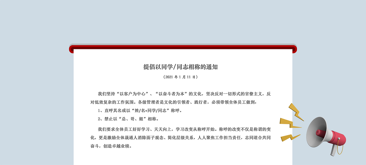 組織扁平,彼此“同學(xué)”相稱,人際關(guān)系簡單純粹